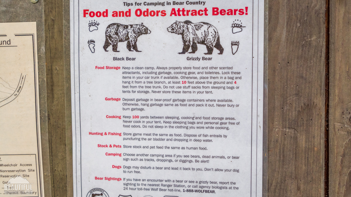 The dogs are permitted at the campground but the administration asks not to allow them run around freely, in order not to disturb a bear (which can be met there) and not to bring it to you. Wild animals are also the reason why you need to be careful with food storage.
